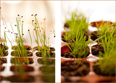 To celebrate a rare 80 degree April first in Chicago, day of shorts and sandals, day of open windows and busy bike paths, Ellen and I transplanted our little seedlings.  They looked like this: