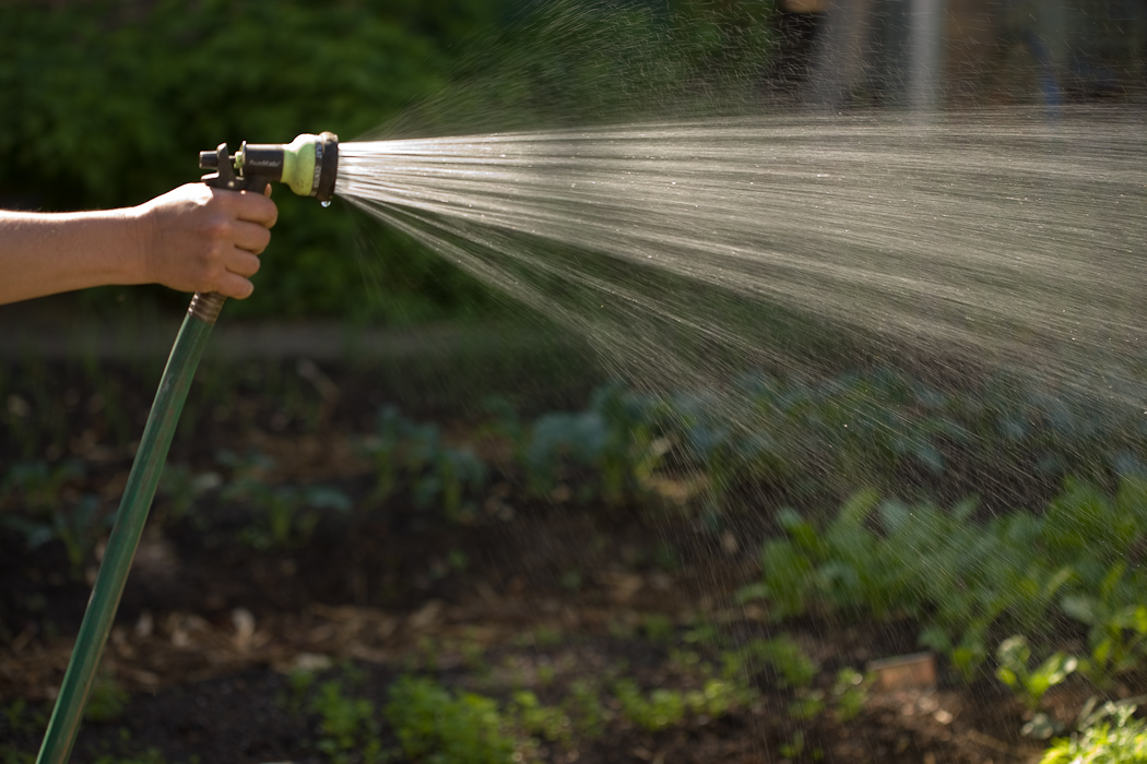 One of my favorite rhythms of a day in the garden together is watering in the late-afternoon.  I like watering myself and I equally like watching the sun hit the water as others nurture our plants.
