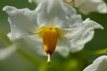 I have always loved the humble, little potato flower. White and yellow…a favorite color combination, too. And the kicker is that it in itself bears no fruit or seed. It only flags what’s happening below. Nice photo, Grant. That close-up shot looks heavenly.