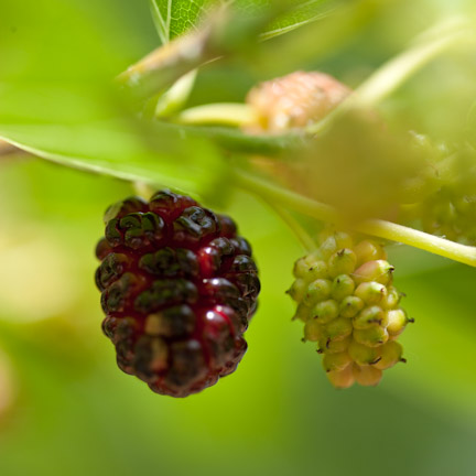 Isn’t it awesome. I’ve never seen a potato flower before, and at age 67 there is always something new. The gooseberries were so translucent, with a drop of dew hanging on…beautiful. And the young mulberry next to the mature fruit. So up close and friendly! Nice shots. Of course a mother would say that. 🙂
