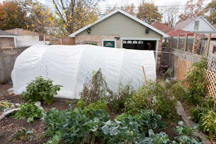 Building the hoop house was work and I kept trying to balance labor and materials against structural integrity. I was hoping to get away with minimalism in some cases and well, Chicago winters disagree!