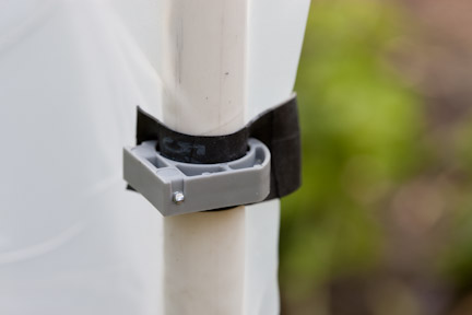 I was pretty excited to find these at the hardware store.  They’re plastic hangers for PVC pipe.  I hit the bike shop for some used inner tubes to protect the plastic and give the clips a little more purchase.  In all honesty, they hold pretty well, but they do pop off occasionally when the wind blows.  If there’s an Achilles heel on this project, it’s these.  We’ll see how they make it through the winter.