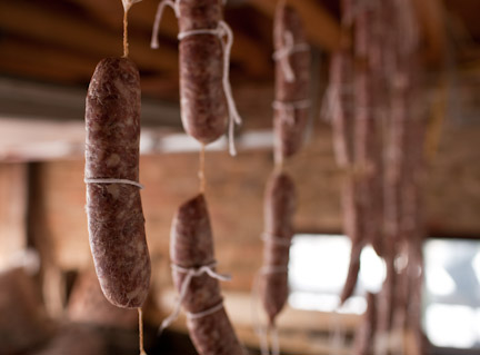 ‘Know your food’ is quite the popular catch phrase lately, so I thought you should know.  This is how salami happens.  Cured meats may seem a total mystery, but it turns out they’re not.  Here’s a simple flow-chart: