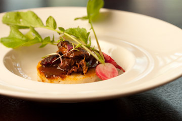 Chef Stegner will also be offering two specials from the kitchen for you to nosh on in the bar, and I’m proud to say I helped develop these ideas!  Thinking about the radish explosion in our garden right now naturally led to spicy braised pork shoulder on a Three Sisters Garden polenta cake garnished with our radishes!