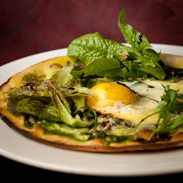 Also coming out of the kitchen is a spring greens pesto flatbread with spinach, a farm egg, Fayette Creamery Avondale Truckle cheese, and greens from our garden!