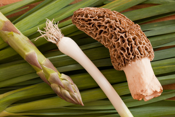 This week, late May in Chicago during a cold, wet spring, you find asparagus and morels and green garlic at the market. A+B+C+eggs (for extra credit) and you have deliciousness on a plate! Dinner last night was amazing. I was too excited to eat it that I couldn’t be bothered to photograph it, but here are the parts: