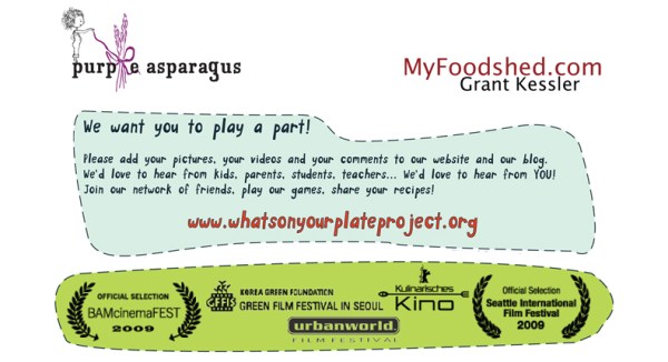 I am pleased to be partnering with Melissa Graham of Purple Asparagus to bring screenings of this wonderful film to Chicago. “What’s On Your Plate?” is a kid-centric film that explores where our food comes from and offers healthful alternatives. The filmmaker puts it this way: